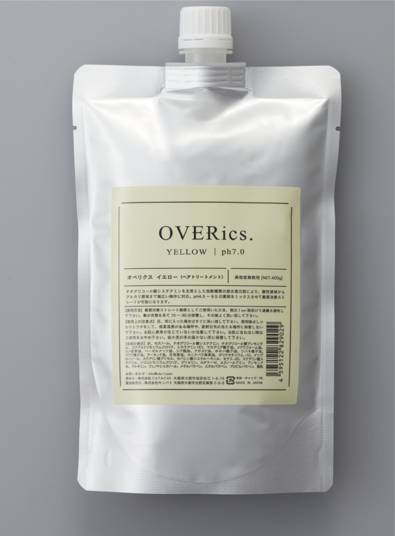 その悩み、オベリクスが全て解決。 オベリクスは、現役美容師の意見や悩みを聞き、現場の声をもとに制作。その結果、多種多様な髪質に対応し、美容師を悩ませる問題を解決できる「簡単・安心・多様」な商材が完成しました。オベリクスですべて完結、解決。美容師が本当に欲しかった薬剤、即戦力になる商材。それがオベリクス。 Features. チオグリコール酸システアミン高配合。 オベリクスの還元剤は「チオグリコール酸システアミン」を使用。チオグリコール酸システアミンは、等電点(pH4.5~5.5)下でも一定の還元力を維持し、熱を加えても傷めにくいというのが大きなメリットです。また、用事調整やスピエラ、GMTも必要ない為、扱いやすく誰でも簡単に使用できます。ブリーチ毛やエイジング毛にも対応可能。 オベリクスでできる髪質改善 ◾︎髪の骨格や土台をつくる ・髪質改善ストレート ・美還元ストレートリペア ◾︎髪を強くする・修復する ・髪質改善カラー ・髪質改善トリートメント 全6種の組み合わせで 髪質改善の可能性が広がる。 組み合わせ次第でブリーチ毛・エイジング毛・軟毛・硬毛・普通毛・強いクセ毛など、ほとんどの髪質に安心、安全に使用できます。オベリクスひとつで矯正~髪質改善まで提案ができ、一年を通した美髪メニューの提案が実現。 OVERics. Products. RED4.5 YELLOW7.0 BLUE9.5 RESTORE REBOO4.5 REBOO3.0 COAT サンプル購入のご案内 サンプルをご希望の方はLINE登録して頂き、お試しセットご購入の旨をご記入ください。サロン様情報を確認後、送料込み6,600円でご購入して頂けます。 お気軽にお問い合わせください。 LINEでも受け付けております。CONTACT TOP 会社概要 お問い合わせ Instagram Line